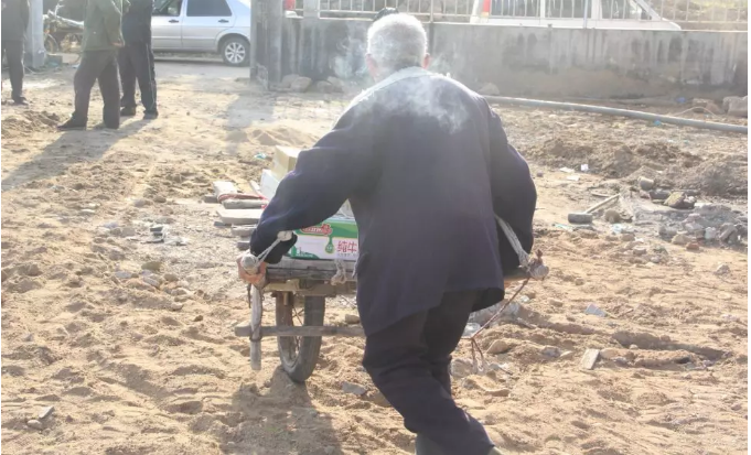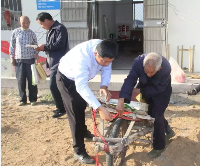老人們已經80多歲了,自己推著車子來到村委,身體依舊不輸年輕人。