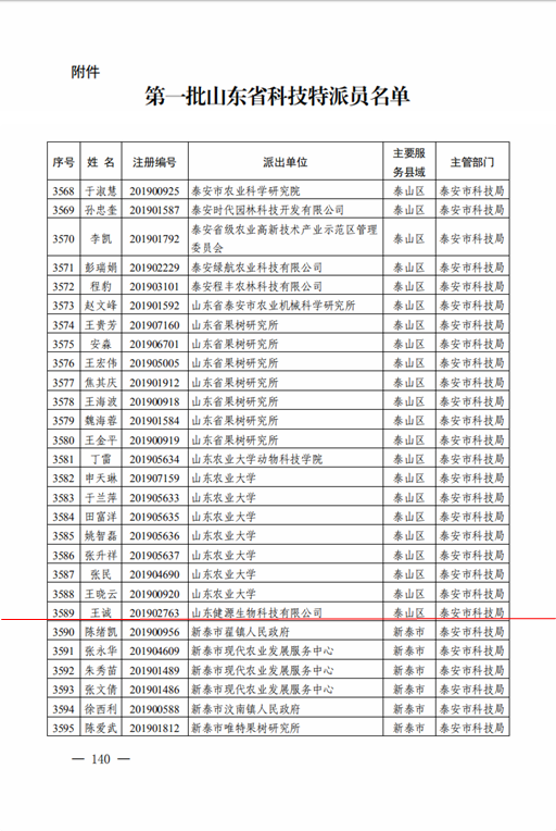 祝賀山東健源生物科技有限公司董事長王誠先生被選任為山東省科技特派員