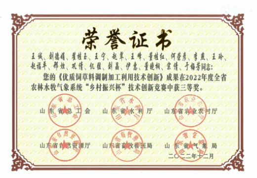 公司產品青貯寶、健力源、益康泰、源立凈等連續兩年被評為山東畜牧業博覽會優質產品金獎并獲得了國家...