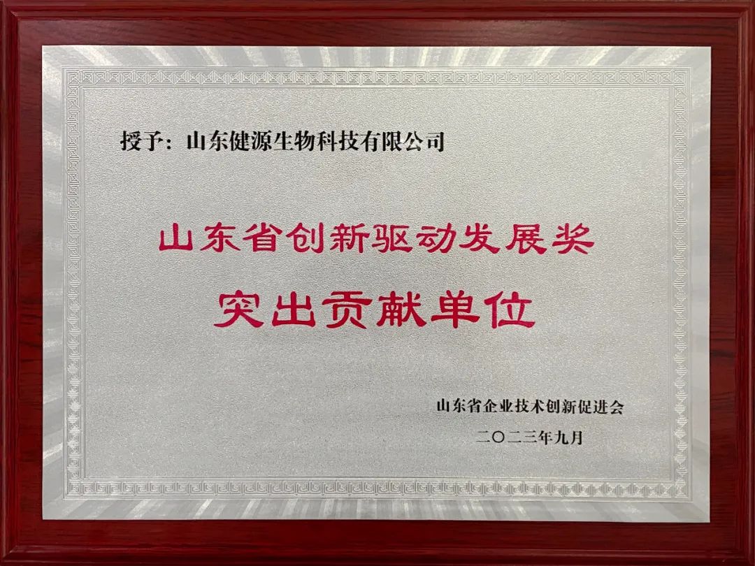 山東健源生物科技有限公司榮獲山東省創新驅動發展獎突出貢獻單位