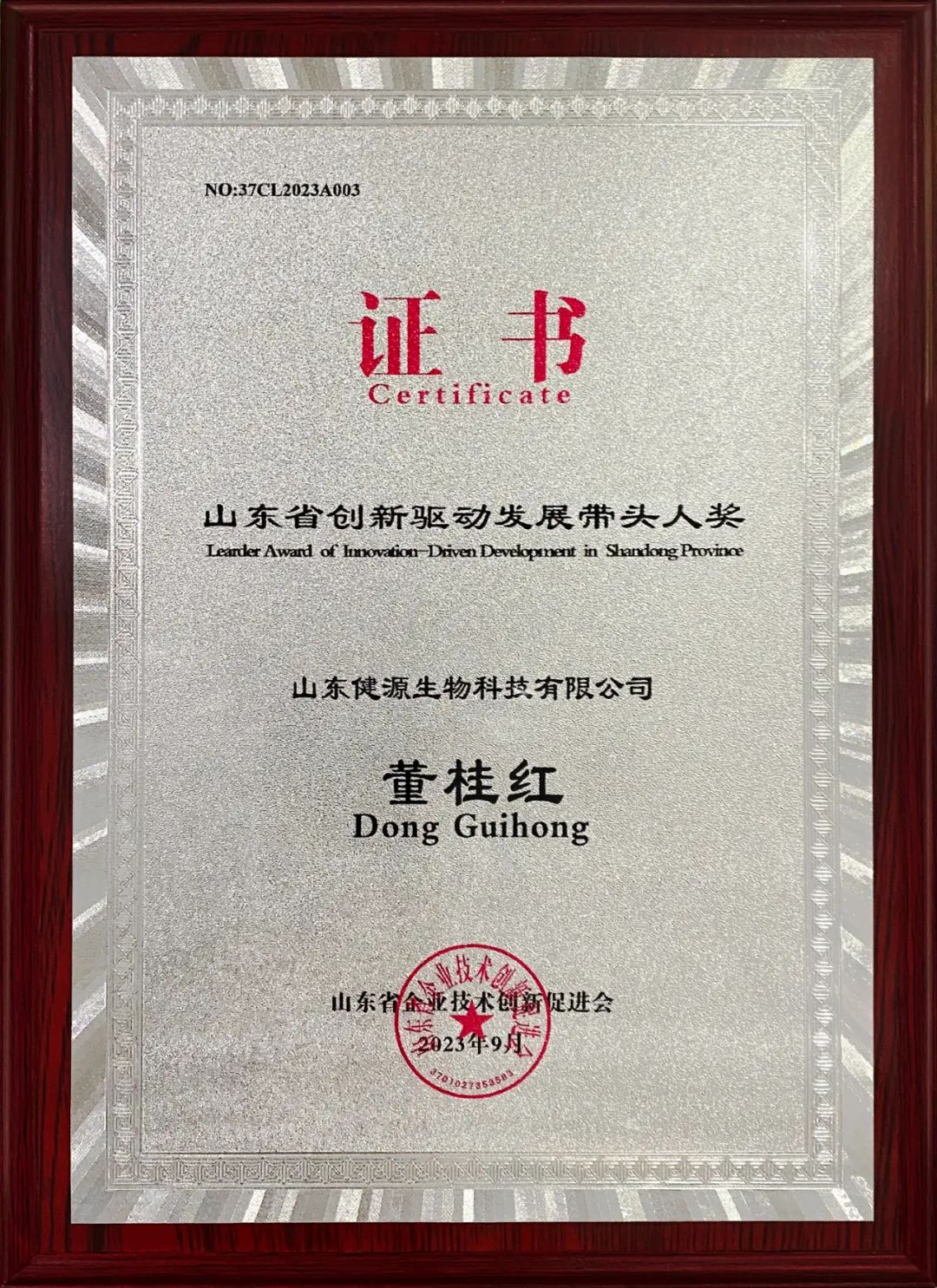 發布時間:[2023-10-13 16:40:46] 瀏覽量:4196次山東省創新驅動發展帶頭人獎