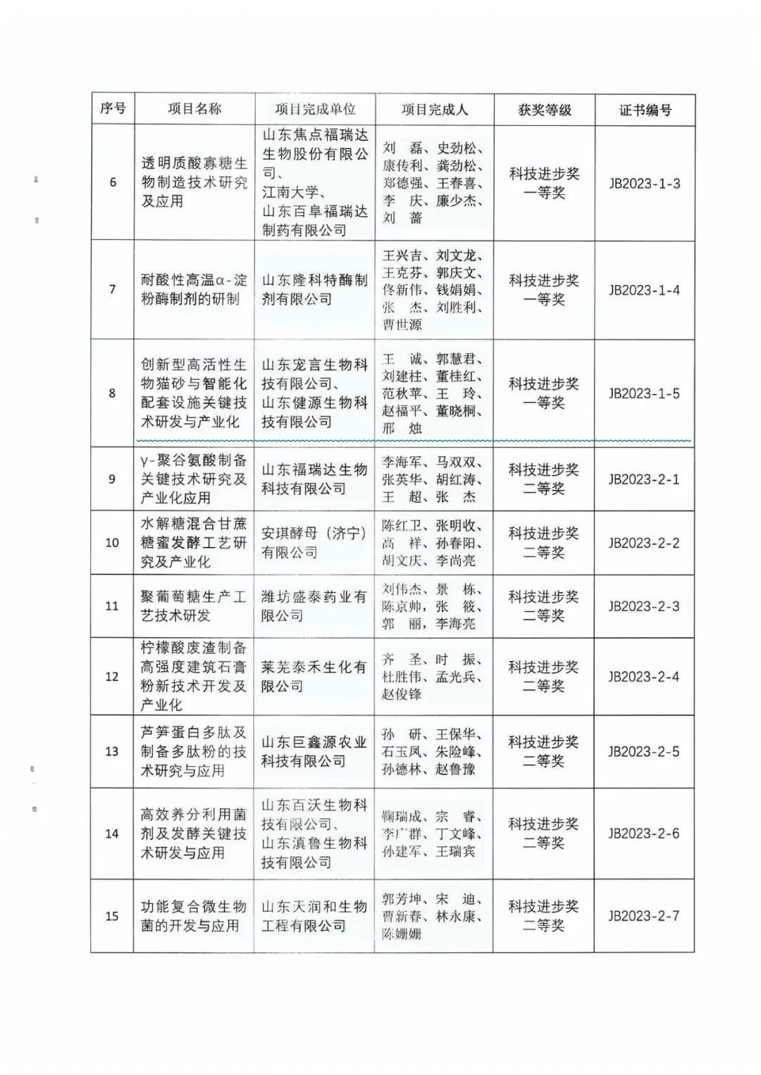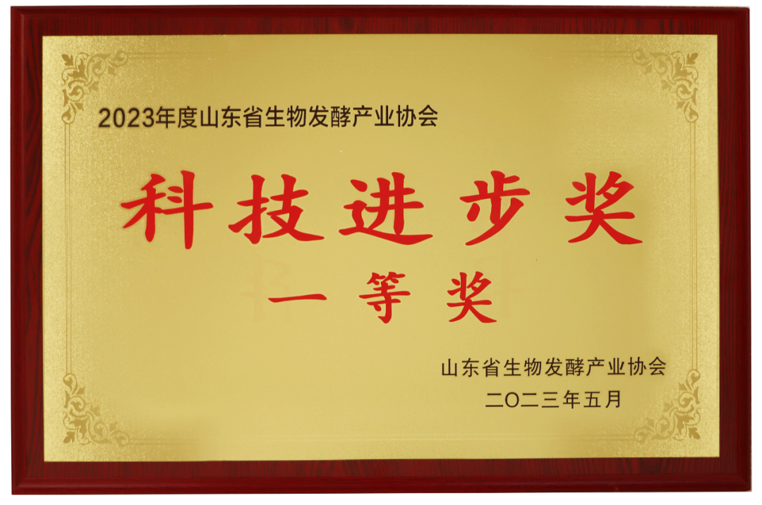 山東省生物發(fā)酵產業(yè)協(xié)會科學技術獎科技進步獎一等獎