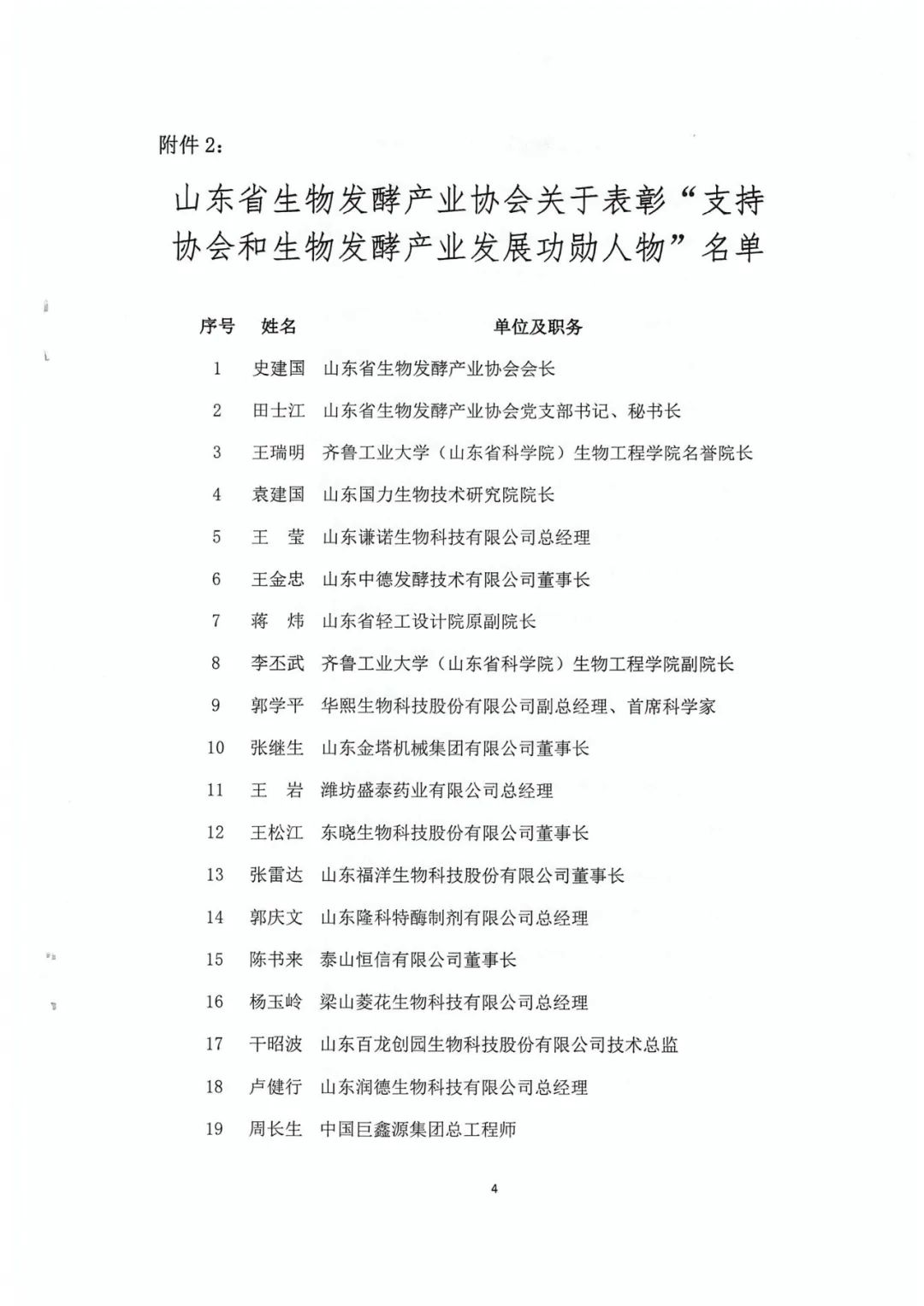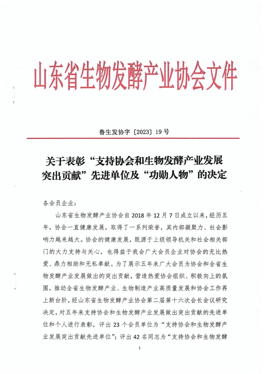 山東省生物發(fā)酵產業(yè)協(xié)會自2018年12月7日成立以來,經歷五年,協(xié)會一直健康發(fā)展,取得了一系列榮譽,其內部凝聚力、社會影響力越來越大。協(xié)會的健康發(fā)展,既源于上級領導機關和社會相關部門的大力支持與關心,也得益于我會廣大會員企業(yè)對協(xié)會的無比熱愛、鼎力相助和無私奉獻。為了展示五年來廣大會員為協(xié)會和全省生物發(fā)酵產業(yè)發(fā)展做出的突出貢獻,營造熱愛協(xié)會組織、積極向上的氛圍,推動全省生物發(fā)酵產業(yè)、生物制造產業(yè)高質量發(fā)展和協(xié)會工作再上新臺階,經山東省生物發(fā)酵產業(yè)協(xié)會第二屆第十六次會長會議研究決定,對五年來支持協(xié)會和生物發(fā)酵產業(yè)發(fā)展做出突出貢獻的先進單位和個人進行表彰,共評出42名同志為“支持協(xié)會和生物發(fā)酵產業(yè)發(fā)展功勛人物”。山東健源生物科技有限公司董事長王誠被評為支持協(xié)會和生物發(fā)酵產業(yè)發(fā)展突出貢獻功勛人物。