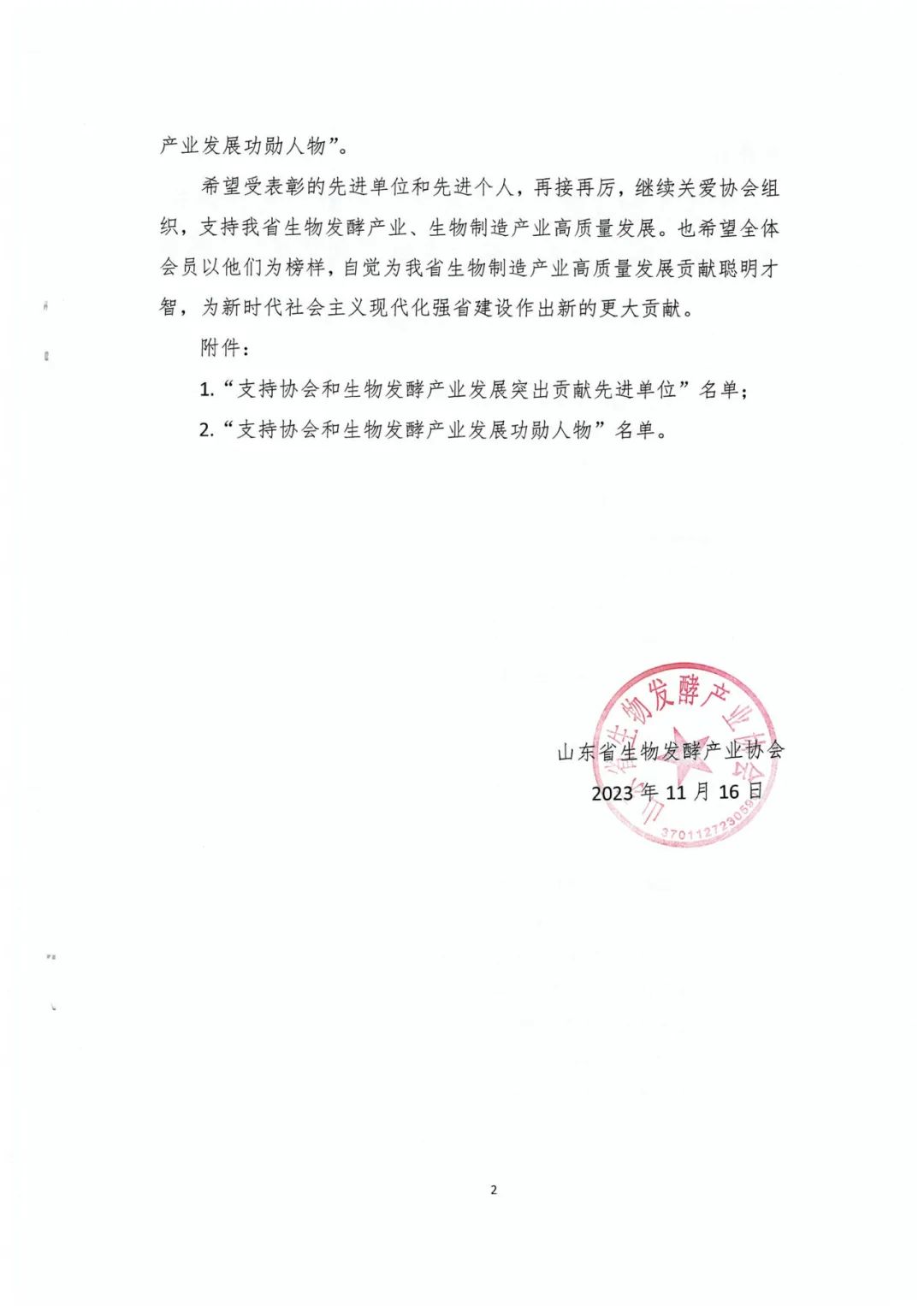 2023年12月7日,山東省生物發(fā)酵產業(yè)協(xié)會第三屆第一次會員大會暨2023年度表彰大會在濟南舉行,山東健源生物科技有限公司榮獲山東省生物發(fā)酵產業(yè)協(xié)會科學技術獎科技進步獎一等獎、董事長王誠被評為支持協(xié)會和生物發(fā)酵產業(yè)發(fā)展突出貢獻功勛人物。