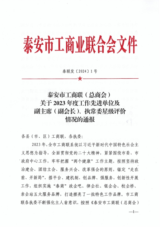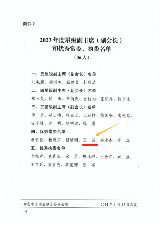 董事長王誠榮獲泰安市工商聯“優秀常委”榮譽稱號