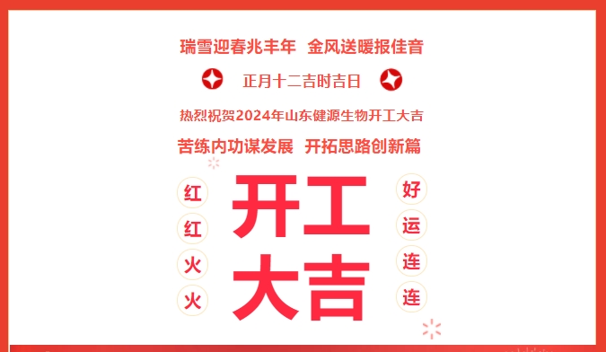 苦練內功謀發展,開拓思路創新篇!嶄新的2024已經拉開帷幕,2024年2月21日(農歷正月十二),健源生物全體員工歡聚一堂,隆重舉行2024年山東健源生物科技有限公司開工典禮。