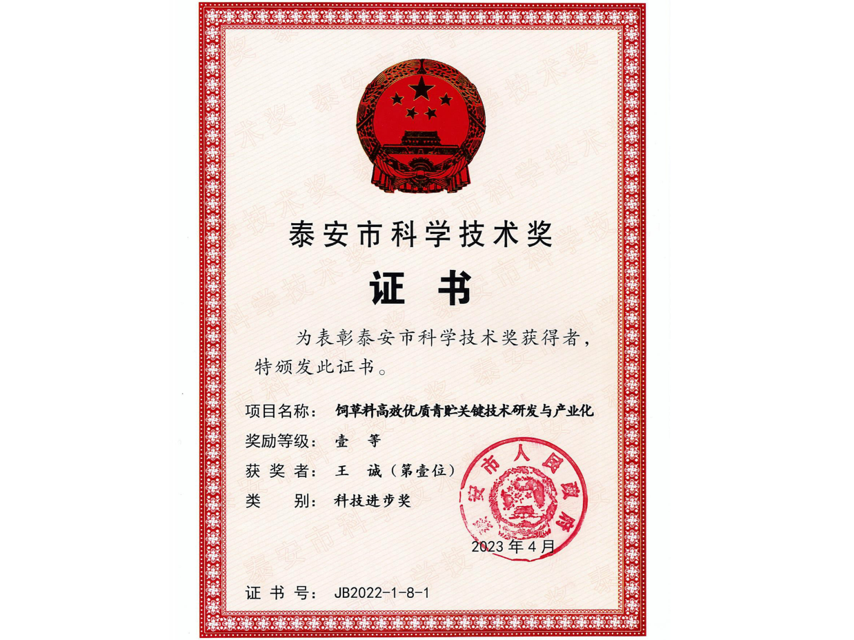 在創新創業之路上,王誠董事長一步一腳印,以實際行動踐行科技工作者精神,取得了一系列科研技術和成果突破,被聘請為“中國科協科技人才獎項評審專家”。2023年榮獲泰安市青年科技創新獎,作為項目第一完成人榮獲泰安市科學技術獎科技進步一等獎,2024年4月榮獲“齊魯最美工程師”稱號。被山東農業大學聘請為“創新創業導師”和“研究生校外行業導師”。