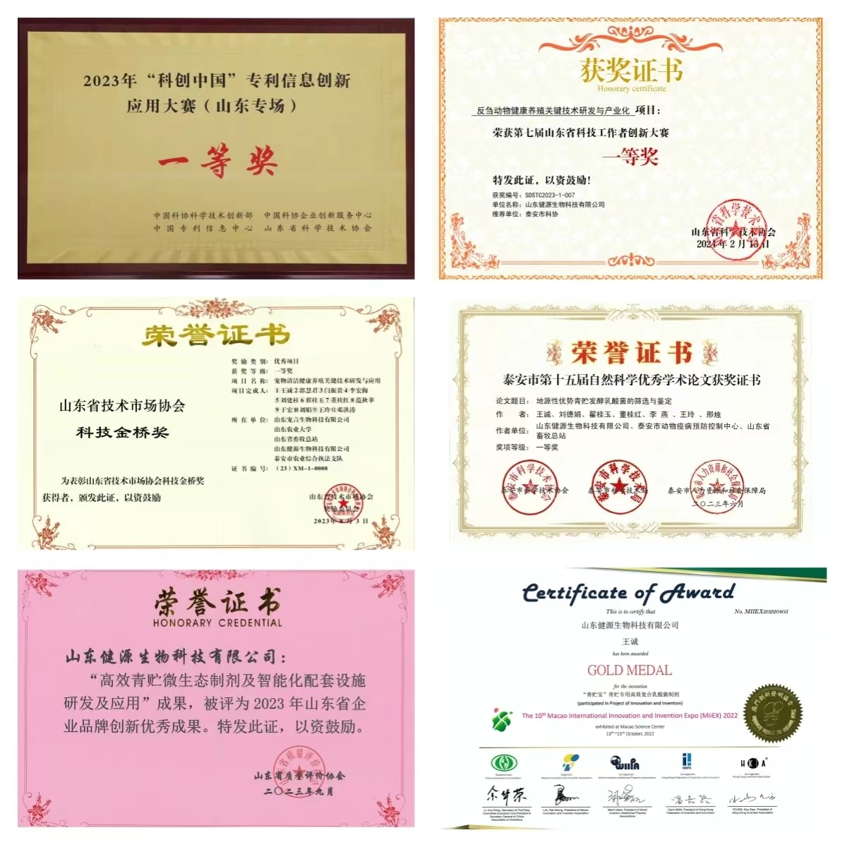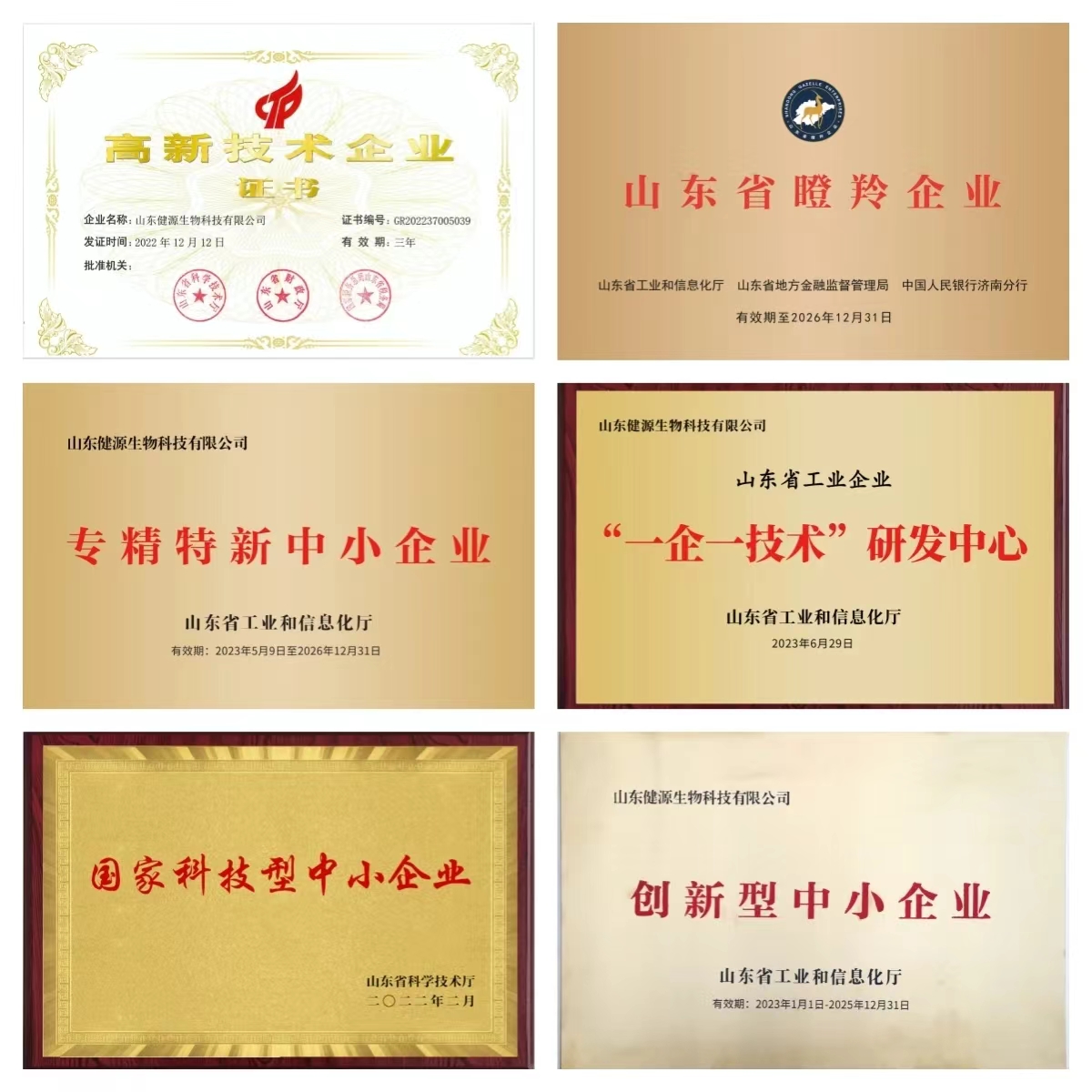 山東健源生物科技有限公司系國家高新技術企業、國家科技型中小企業、山東省瞪羚企業、山東省專精特新中小企業、山東省一企一技術研發中心、泰安市農業產業化重點龍頭企業。公司深耕動物微生態行業十年,主攻動物類生物大健康產品,研發出三十多種高活性生物制劑產品,致力于以高科技生物技術保障動物健康,現已獲得國家知識產權局頒發的各類專利證書100余項,其中包括32項國家發明專利、3項國際發明專利,60余項實用新型專利、14項軟件著作權,注冊商標100多個,還有正在申請中的國家發明專利20余項,累計榮獲市級科技獎項7項,省級科技獎項30余項,部級科技獎項12項。