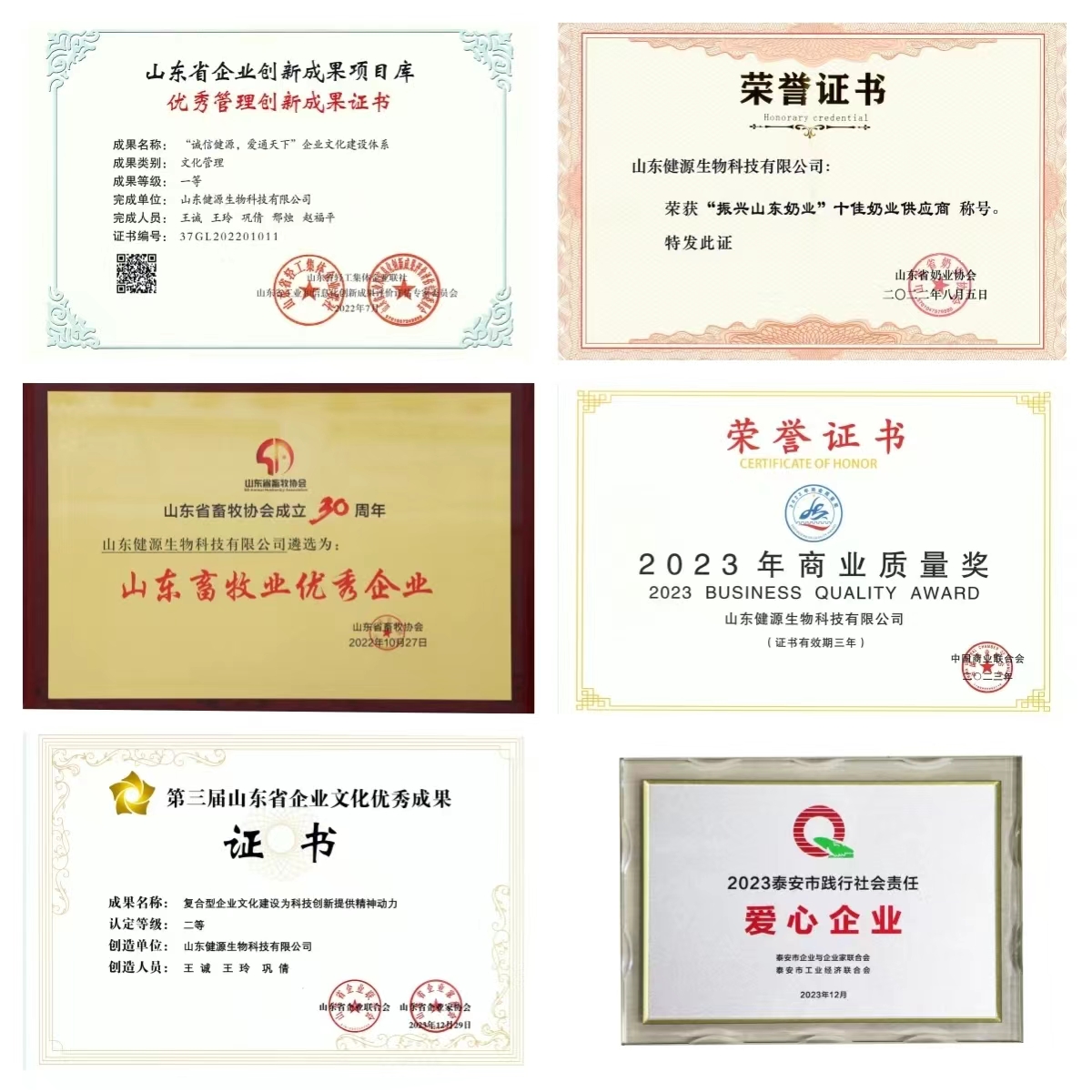 健源生物成立十周年,部分企業榮譽展示