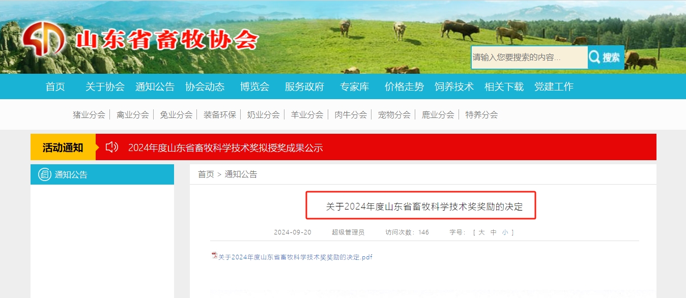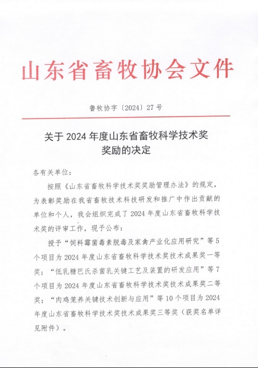 健源生物榮獲山東省畜牧科學技術獎科學技術成果獎一等獎