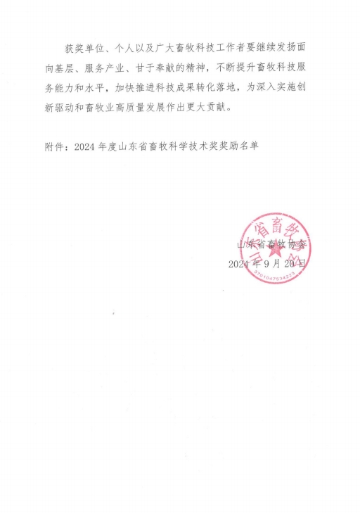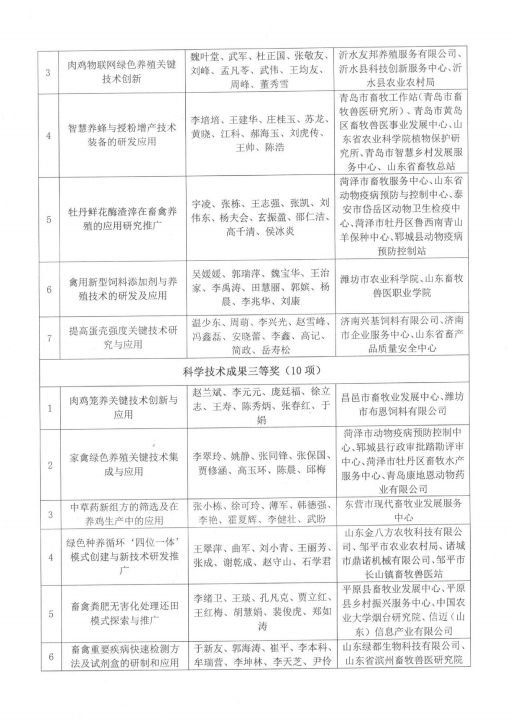 按照《山東省畜牧科學技術獎獎勵管理辦法》的規定,為表彰獎勵在我省畜牧技術科技研發和推廣中作出貢獻的單位和個人,經過評審,評選出山東省畜牧科學技術獎技術成果獎一等獎5個,二等獎7個,三等獎10個。