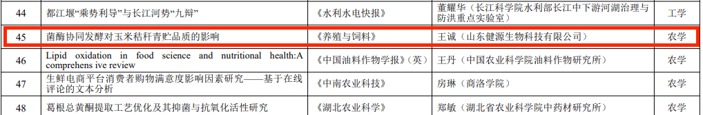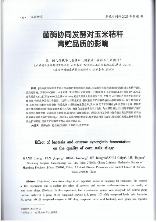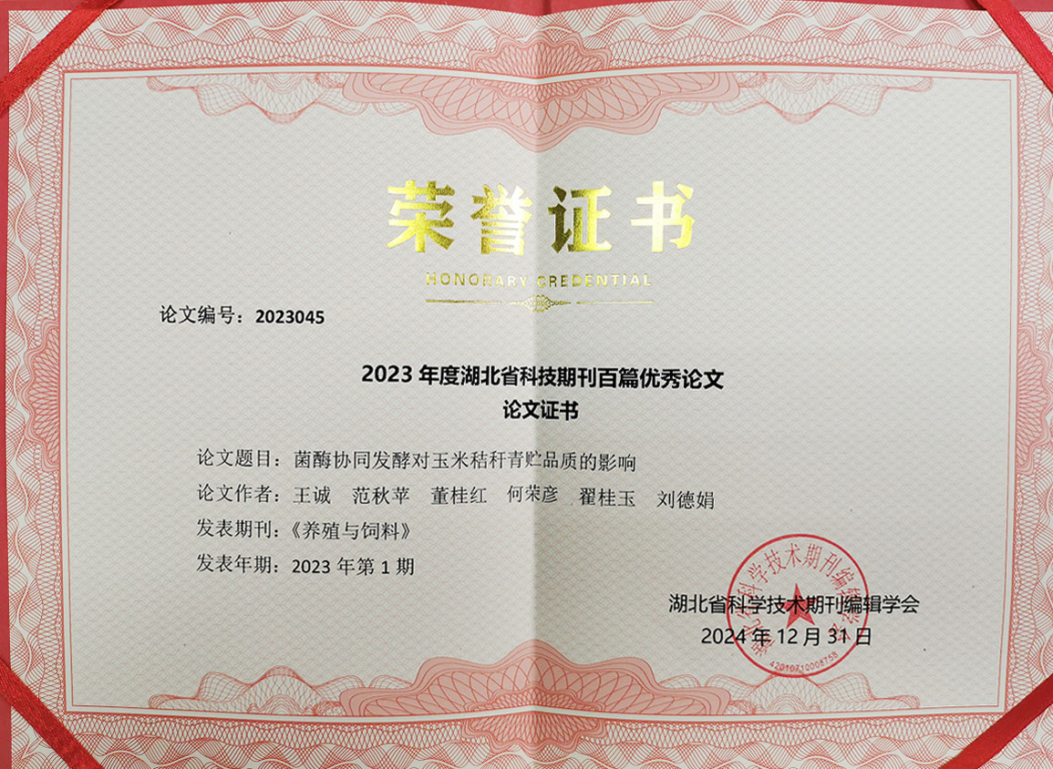 發(fā)布時(shí)間:[2025-1-15 17:6:25] 瀏覽量:2553次2024年12月31日,由湖北省科學(xué)技術(shù)協(xié)會(huì)指導(dǎo),湖北省科學(xué)技術(shù)期刊編輯學(xué)會(huì)組織實(shí)施的2023年度湖北省科技期刊百篇優(yōu)秀論文遴選結(jié)果公布,經(jīng)過評選,山東健源生物科技有限公司董事長王誠帶領(lǐng)研發(fā)團(tuán)隊(duì)撰寫的《菌酶協(xié)同發(fā)酵對玉米秸稈青貯品質(zhì)的影響》論文入選2023年度湖北省科技期刊百篇優(yōu)秀論文。