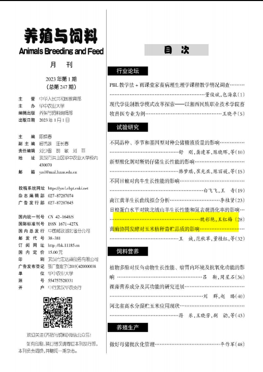 論文發(fā)表在《養(yǎng)殖與飼料》2023年第1期