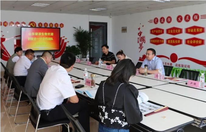 山東健源生物董事長王誠向大家介紹健源生物企業文化、黨建文化,濃厚的企業文化氛圍得到大家高度的認可。