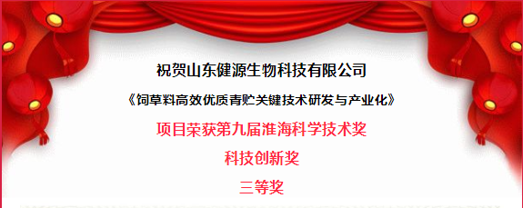 祝賀山東健源生物榮獲淮海科學技術獎科技創新獎三等獎