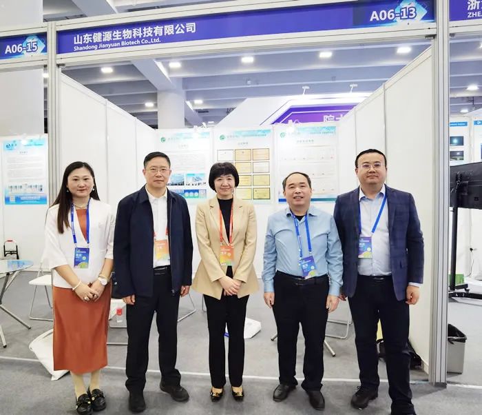 九三學社中央社會服務部副部長蔣承華,山東省政協副秘書長、九三學社山東省委會專職副主委李宗濤蒞臨健源生物展位指導工作