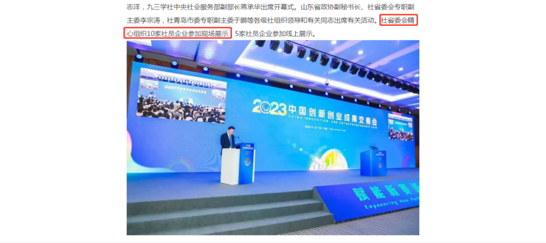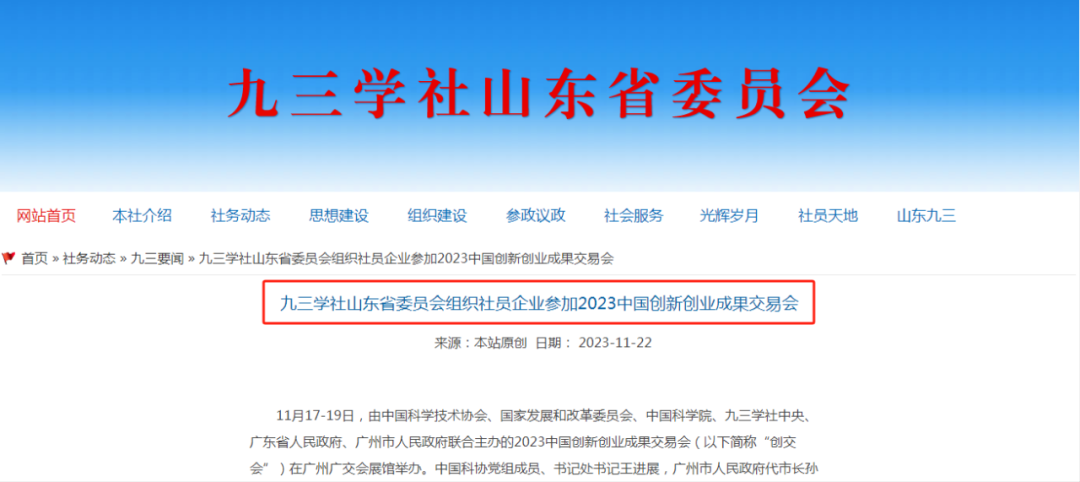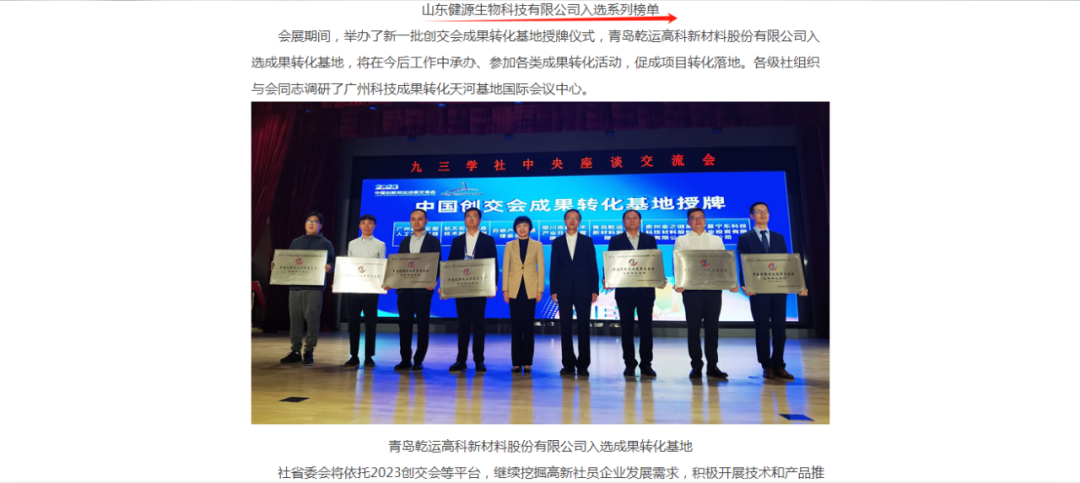 山東健源生物科技有限公司在此次創交會上的優異表現也獲得了九三學社各級委員會的關注和報道。